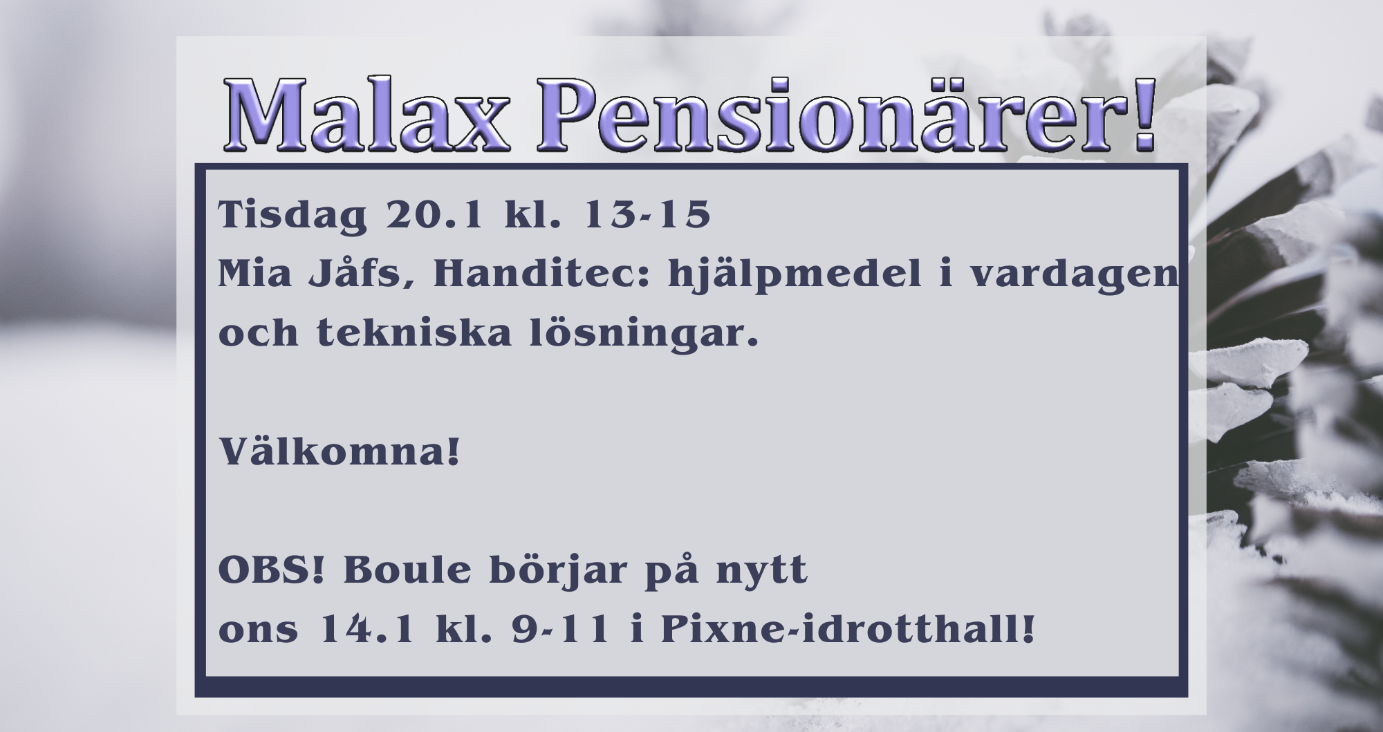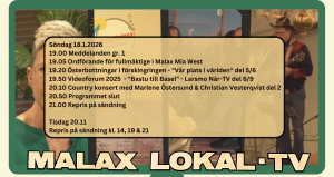 Läs merVi är tillbaka i höst med nya intressanta sändningar. Bl.a. får vi se veteranmopeder “in action”. Tipsa oss gärna på evangemang, intervjuobjekt, personporträtt, önskerepriser eller övrigt som ni tittare skulle vilja se i den kommande säsongens program. Eller om ni gjort egna videosnuttar ni vill visa i Malax TV. Skicka mail till malax.tv@pp.malax.fi eller ring: […]