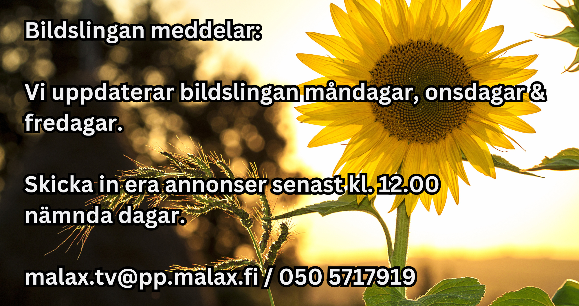 Läs merRösta på en eller flera favoritprogram eller “typer” av program genom att klicka på följande länk. https://linkto.run/p/06RE4V5H Alla program sändes under 2021 och genom att skicka e-post eller SMS till oss eller genom att kommentera valfritt i kommentarsfältet på facebook är du med i utlottning av en lunchbiljett. E-post: malax.tv@pp.malax.fi SMS: 050 5717 919, facebook.com/malaxtv […]