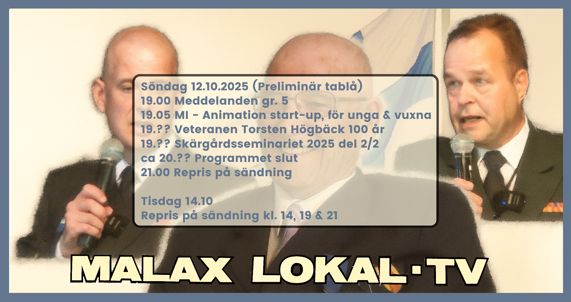 Läs merSom ni säkert märkt har vi på sista tiden lagt upp en del gamla favorit repriser. Bl.a. en serie veteran intervjuer gjorda av Fredrik Smulter, byafrågan och arkeologiska utgrävningar. Många program har spelats in genom åren och under den blåa fliken hittar ni ett programregister, som innehåller i stort sett alla program gjorda av Malax […]